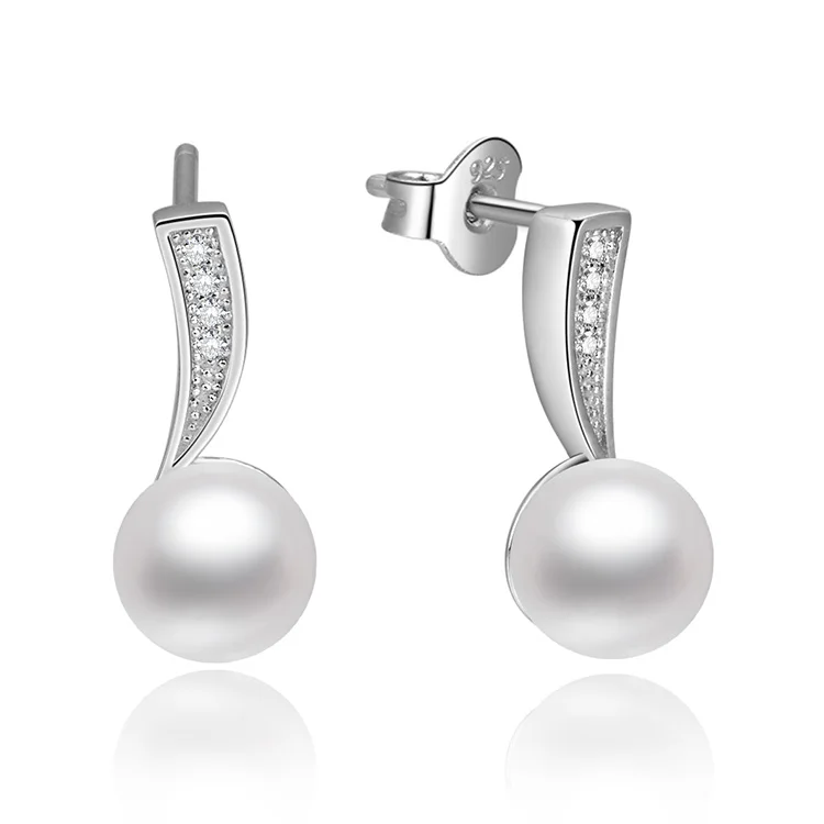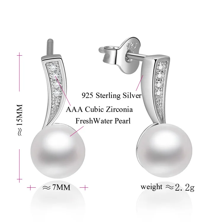 POLIVA Elegant Female Pearl Earring Fresh Water Earrings with 5A Cubic Zirconia Stone Silver 925 Earrings for Women